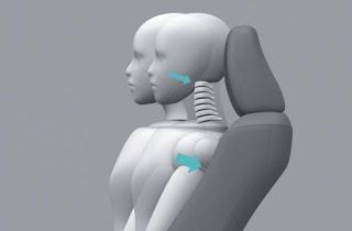 Ghế ngồi được trang bị cấu trúc giảm chấn thương cổ với phần tựa đầu nghiêng về trước giúp giảm thiểu chấn thương khi có va chạm mạnh từ phía sau |
